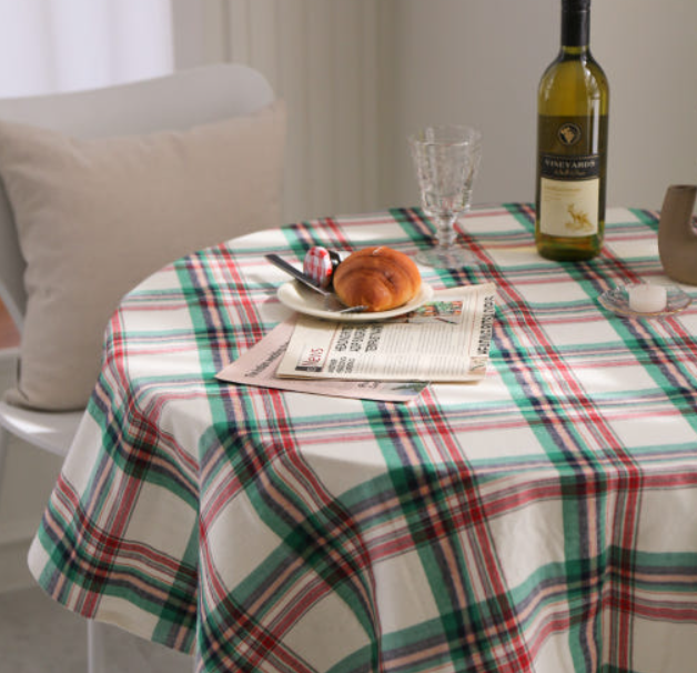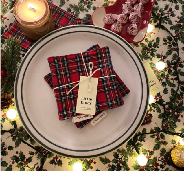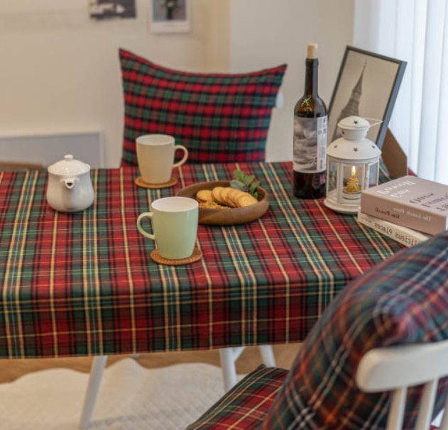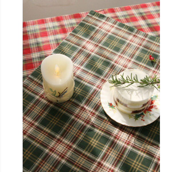 테이블보 다크체크 2인 연말 홈파티 홈카페 레드