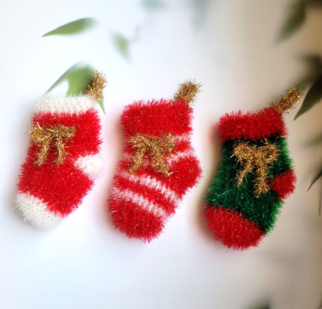 크리스마스 양말 수세미 손뜨개 성탄절 선물 트리 장식 핸드메이드 두겹