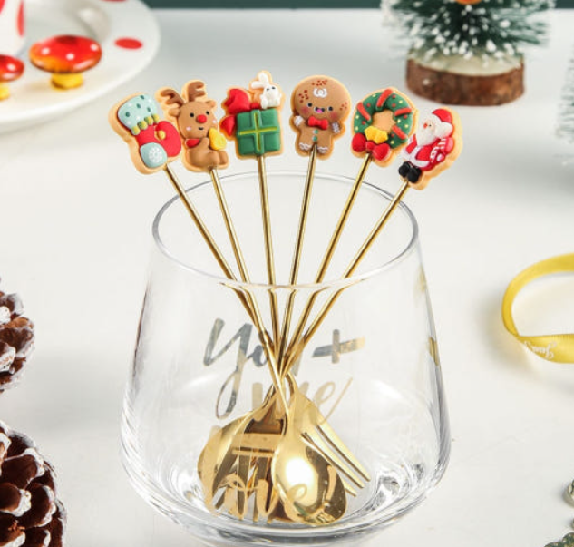 크리스마스 티스푼 머들러 스테인레스 스틸 디저트 아이스크림 산타 진저 브레드맨