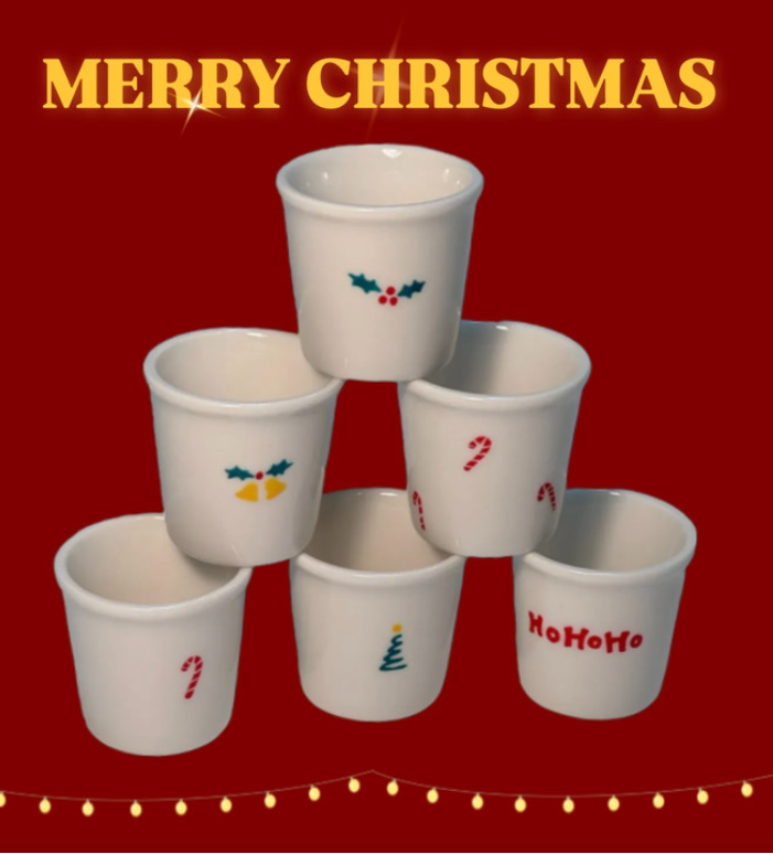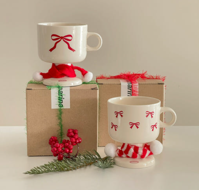 레드 리본 손잡이 고블렛잔 세라믹 와인잔 요거트볼 2p 귀여운 크리스마스 선물