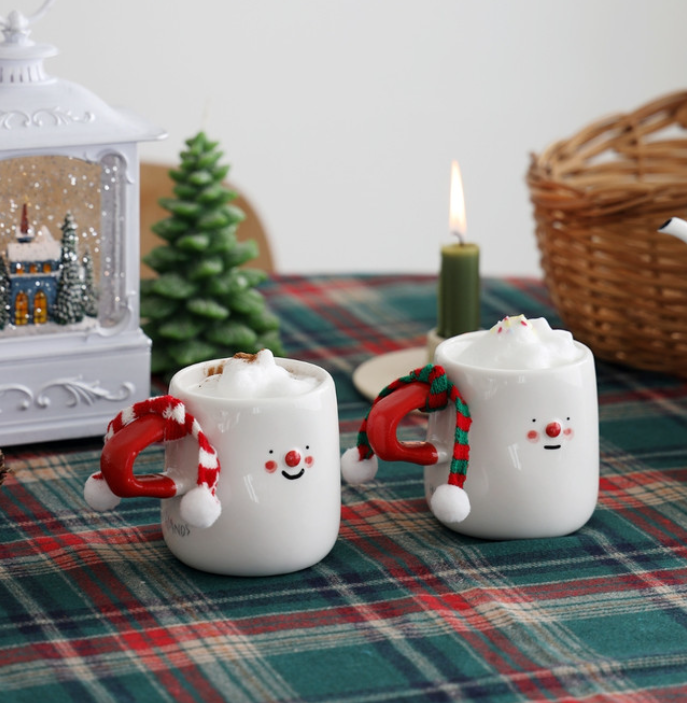 크리스마스 머그컵 세트 티스푼 홈파티 홈카페 머그잔 눈사람 산타