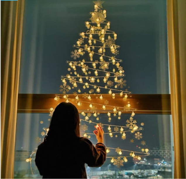창문에 붙이는 크리스마스 앵두 조명 100구 스티커 줄 세트 로맨틱 무드 벽 트리